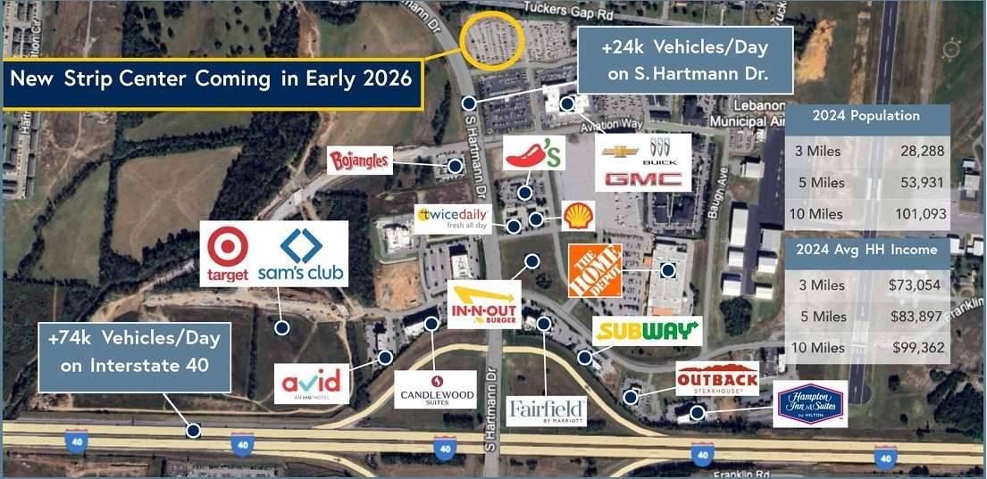LOCATION! LOCATION! LOCATION! 5. 42 Acres Located near the Leeville Pike & S. Hartmann Drive Intersection | High Traffic Area | Currently Zoned RP2 | Over 1000' Road Frontage on S. Hartmann Dr | Gas/ Water at Road | Upgraded Sewer Lines | Easy Access to I40 & 840 | Per City of Lebanon, Curb Cut to be directly across from Tuckers Gap Rd ( See Media)