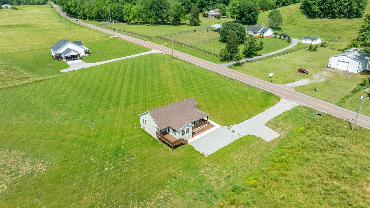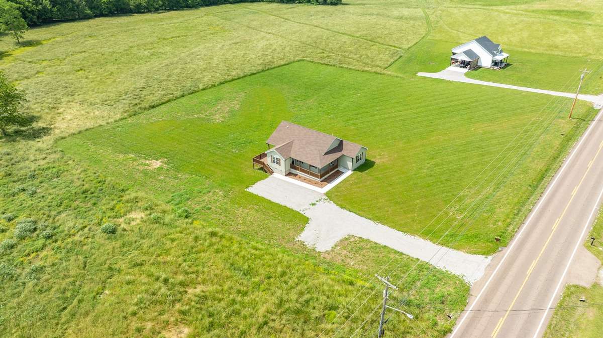 Modern Day Farmhouse! Situated on 15. 4 +/ - level acres with over 1, 000 feet of creek frontage, this 1570 Sq Ft new construction home offers 3 bedrooms, 2 full baths, spacious living room/ kitchen with custom cabinetry, pantry, and a window view to die for! Oversized back deck and wrap around front porch feature beautifully stained wood railing/ posts with tongue and groove ceilings. This property offers an abundance of room to make the perfect mini farm that everyone is looking for.