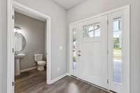 You can buy your new market home today with a $ 99 deposit and pay only $ 99 total cash out of pocket for total closing costs using preferred lender. This floor plan offers an open & spacious 1st floor Entire 1st floor will have laminate flooring. Kitchen features are staggered cabinets, granite counter tops, under cab. lights, S/ S appliances w/ a gas stove, tile backsplash, covered back porch, gas tankless H/ W. 2" faux white blinds.