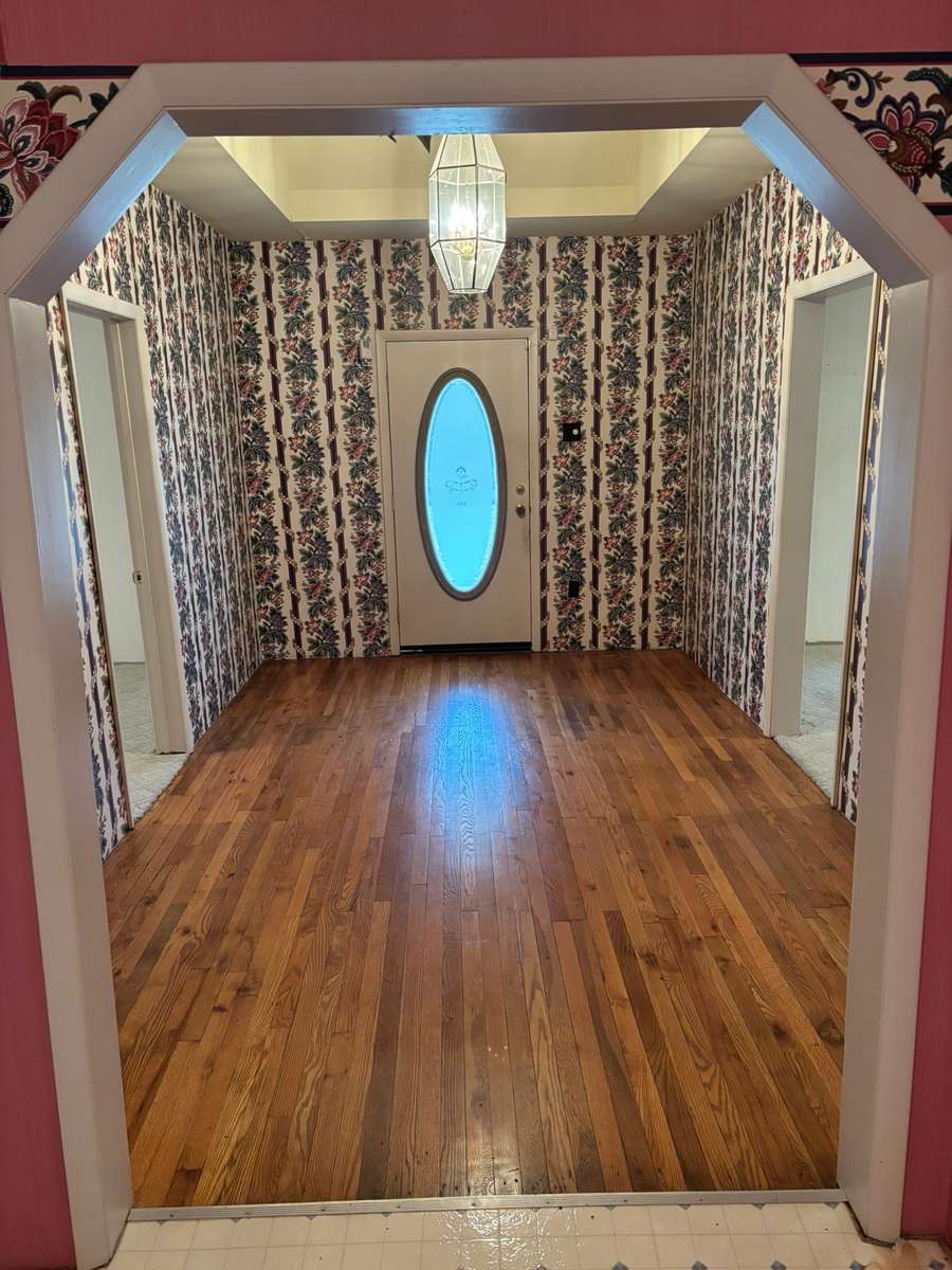 Cute and Quaint farm house on 5. 77 +/ - acres SELLING AS- IS. This home features 2 bedrooms and 2 full bathrooms. A large hardwood entry foyer with vaulted ceilings leads into a living room with a rock wood burning fireplace. The kitchen features a built in oven and smooth top stove with a bay window in the eat in area. The large main bedroom features a shower only with a single vanity. The second bedroom features a fireplace. With a little tender loving care, you can bring this farm house back to it' s original glory.