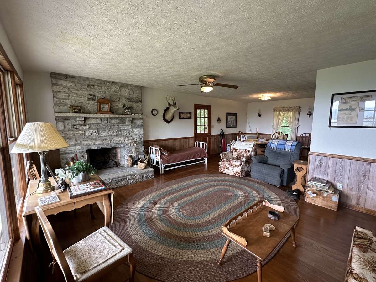 Rare find! This one- owner Center Hill Lake Cabin offers spectacular sweeping views & ample parking, perfect for towing in your boat & trailer with plenty of turnaround space. This solid two- bedroom cabin features an open concept great room with a beautiful stone gas fireplace. A picture window provides breathtaking views from the great room and dining area, overlooking Center Hill Marina and Cove Hollow. Enjoy hardwood floors and an open concept kitchen - all appliances and furnishings included. The covered front porch, measuring 36' x 8' , is perfect for relaxation, while the screened- in porch, measuring 20' x 12' , offers additional space with a sink, countertop, and cabinet for outdoor entertaining or cleaning your catch of the day. Both porches provide picturesque views of Center Hill Lake, making them ideal for morning coffees and evening retreats. With 100' x 285' of wooded land at the back of the property, maintenance is minimal. Don' t miss this chance to own a piece of paradise!