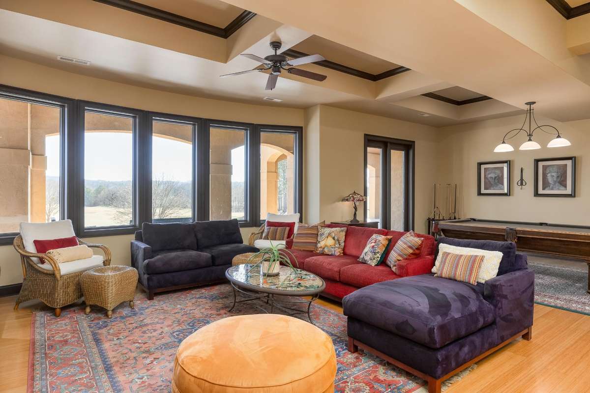 Nestled in the heart of the prestigious Council Fire Golf Community, this Mediterranean- inspired masterpiece blends timeless elegance with modern luxury—just 25 minutes from downtown Chattanooga. With over 8, 000 square feet, 5 bedrooms, 5. 5 bathrooms, and impeccable craftsmanship throughout, this estate is designed to impress. From the moment you enter, you' re welcomed by soaring 12- foot ceilings, 8- foot solid doors, designer lighting, and a stunning combination of bamboo and custom tile flooring. Expansive windows flood the home with natural light and frame sweeping views of the golf course and distant mountains. The gourmet kitchen is truly a chef' s dream, featuring top- of- the- line Miele and Viking appliances, double convection ovens, warming drawers, multiple wine chillers, and even a pasta faucet—all perfect for hosting elegant dinners or casual get- togethers. The main level flows effortlessly into multiple living and dining areas, offering both space and sophistication for everyday living or entertaining. The owner' s suite is a luxurious private retreat on the main level, complete with dual walk- in closets, a spa- style bathroom with dual water closets ( one with a bidet) , a deep infinity soaking tub, a double shower, and private access to a serene outdoor terrace—ideal for a hot tub, massage area, or private relaxation space.