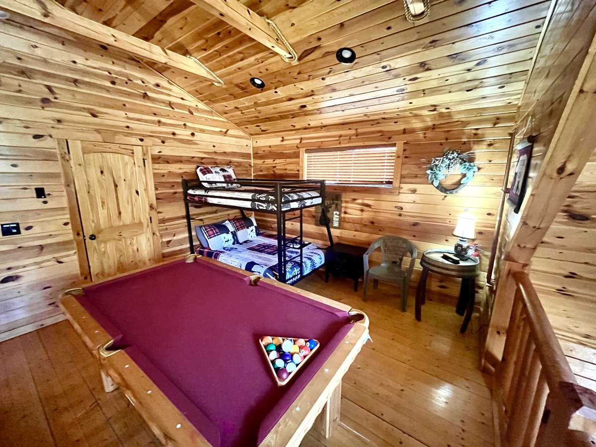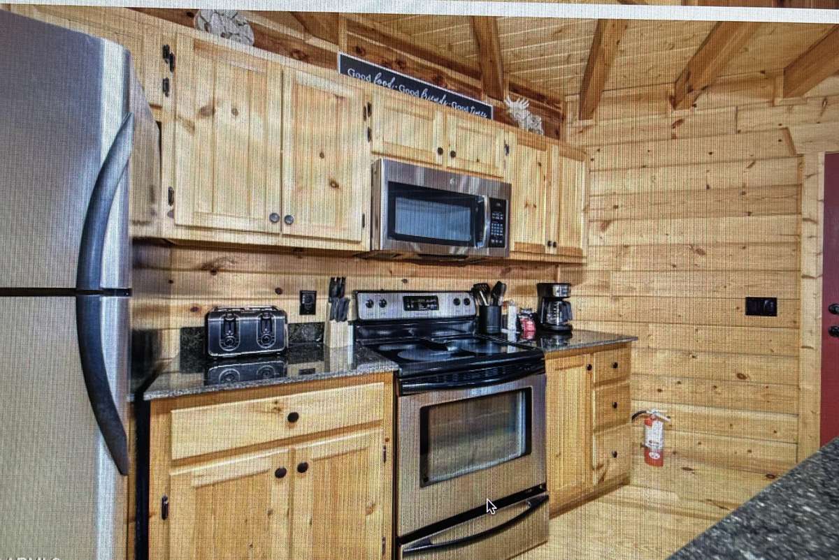 Former MODEL HOME of White Oak Resort & Lodge. This lovely 2 bedroom + loft sleeps 7! Boasts 2 1/ 2baths, OPEN floorplan, beautiful Knotty Pine interior w/ Cathedral ceiling and large stone FP, covered porch, screened deck, wrap around deck, balcony, and HOT TUB. Kitchen has granite, breakfast bar, coffee bar, and large Dining room table. Kids will love the Loft area, with pool table and the seasonal community pool with rock waterfall and zero entry! GOLF course across from resort ( Bent Creek) . Two Masters with ensuite bathrooms. Easy entrance from parking space, only ONE STEP onto porch to enter the cabin! HOA fees include resort amenities ( pool, tennis, fitness, Clubhouse, lawn maintenance, cable, internet, gas for FP, BBQ Grills, Pest Control, Annual Termite Inspection, Trash, Road Maintenance, Common area insurance, and HOA Management. Minutes from Smokey Mountain Nat' l Park entrance, Arts & Crafts district, antiques, coffee shops, tea room, vintage shopping and area attractions/ restaurants. This well cared for cabin, situated on a corner lot, is being sold fully furnished. Cabin is ready for you to kick back and enjoy! This is the cabin you' ve always wanted! Great 2nd home, or potential investment property.