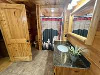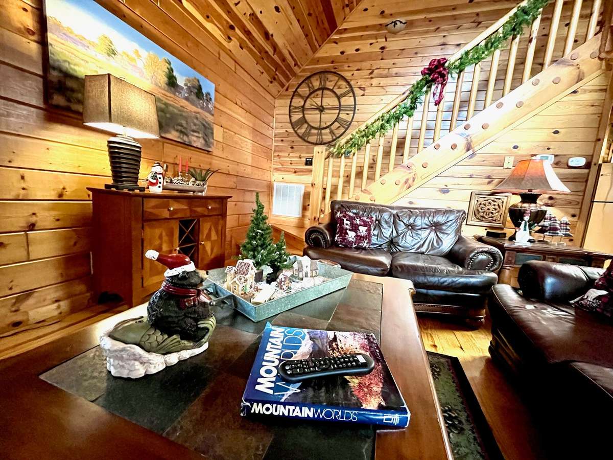 Former MODEL HOME of White Oak Resort & Lodge. This lovely 2 bedroom + loft sleeps 7! Boasts 2 1/ 2baths, OPEN floorplan, beautiful Knotty Pine interior w/ Cathedral ceiling and large stone FP, covered porch, screened deck, wrap around deck, balcony, and HOT TUB. Kitchen has granite, breakfast bar, coffee bar, and large Dining room table. Kids will love the Loft area, with pool table and the seasonal community pool with rock waterfall and zero entry! GOLF course across from resort ( Bent Creek) . Two Masters with ensuite bathrooms. Easy entrance from parking space, only ONE STEP onto porch to enter the cabin! HOA fees include resort amenities ( pool, tennis, fitness, Clubhouse, lawn maintenance, cable, internet, gas for FP, BBQ Grills, Pest Control, Annual Termite Inspection, Trash, Road Maintenance, Common area insurance, and HOA Management. Minutes from Smokey Mountain Nat' l Park entrance, Arts & Crafts district, antiques, coffee shops, tea room, vintage shopping and area attractions/ restaurants. This well cared for cabin, situated on a corner lot, is being sold fully furnished. Cabin is ready for you to kick back and enjoy! This is the cabin you' ve always wanted! Great 2nd home, or potential investment property.