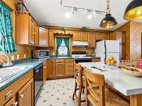 Cottage features three spacious bedrooms, two and a half baths, and a seamless open floor plan on the main level that invites natural light and lake vistas into every corner. The heart of the home, a well- appointed kitchen with sleek Corian countertops, is ready for entertaining and creating culinary delights.