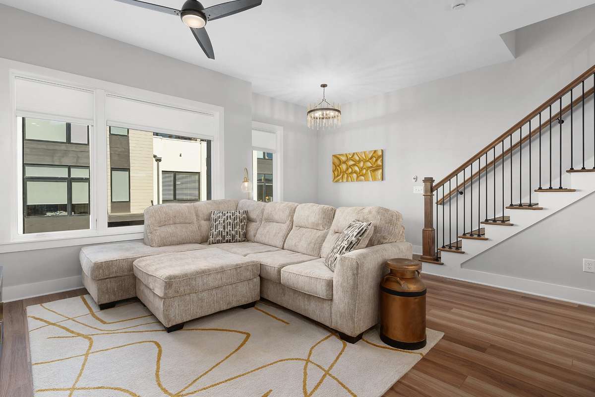 Like- new 2 bedroom, 2 bath townhome with a double garage in the Burnside development in the heart of the Southside just minutes from schools, shopping, restaurants, hospitals and downtown Chattanooga. You will love the tall ceilings, luxury vinyl flooring, great natural lighting via the many casement windows, quartz countertops, decorative lighting, and neutral decor in this 3- level unit. Entry to the townhome is from a courtyard like setting to an office or den with access to the garage. Head upstairs where you will find an open living concept with the kitchen, dining and living room, as well as a guest bedroom and full guest bath. The kitchen boasts a large center island with pendant lighting, subway tile backsplash, soft- close cabinetry and a pantry. The 3rd level offers a private retreat with the primary bedroom, a walk- in closet and the primary bath with separate vanities and a shower with tile and new glass surround. The laundry closet and covered trex deck round out this level. This mixed- use community also offers firepit area, dog park, corn hole and just steps from the No 10 Steakhouse restaurant. Simply a wonderful opportunity for the buyer seeking the ease of townhome living, a weekend retreat or investment opportunity in a central location, so please call for more information and to schedule your private showing today. Information is deemed reliable but not guaranteed. Buyer to verify any and all information they deem important.