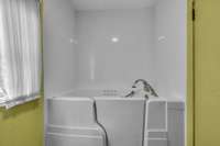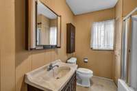 A stunning basement with rich cabinetry for plenty of extra storage and a full kitchen setup, ideal for entertaining or additional living space. The open layout and vibrant finishes make it both functional and inviting. A bright and clean basement bathroom with a walk- in shower. The space also features a utility area with a floor drain and an energy- efficient water heater. The basement includes a dedicated laundry space equipped with a washer and ample room for additional storage.