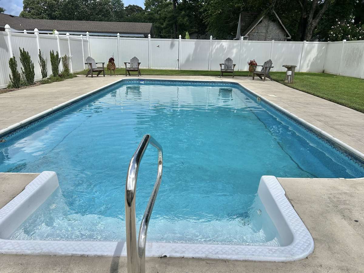 This house will blow you away! ! Very well taken care of by 1 owner! ! This house has a paved driveway, detached two car garage, huge custom family room with a gorgeous stone fireplace, & recessed lighting! This home also features an inground swimming pool, huge wrap around porches, and a large covered side patio. The carpet throughout the home looks and feels brand new! ! Brand new kitchen counter tops just installed! New walk in shower in the primary bedroom just installed! ! HVAC is 1yr old and the roof is less than 8yrs old! ! Great front yard! ! Safe and kid friendly neighborhood that is located conveniently to all the schools k- 12th grade!!