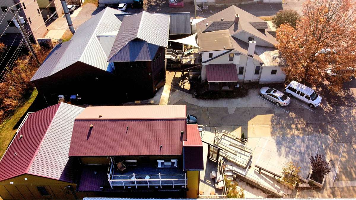 A courtyard connects the Flex- Use Facility and includes five spacious working studios, two loading docks, and a lower drive- in warehouse. This building has 600 amps of three- phase power and ceilings that rise to 14- feet high.