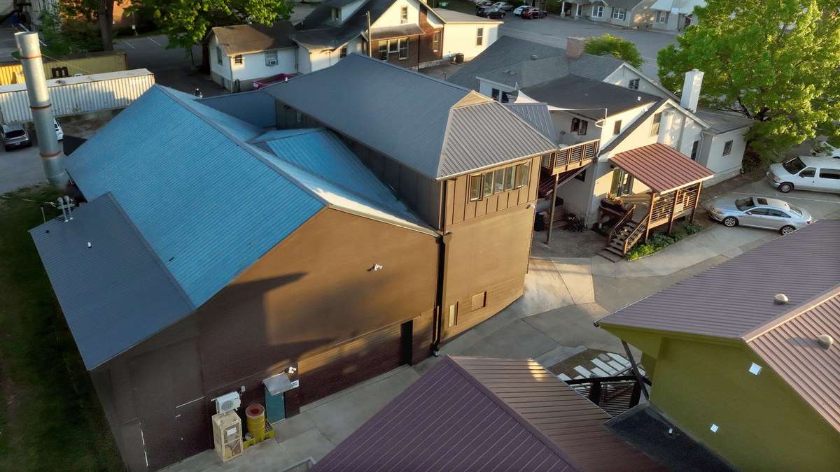 The Bungalow combines comfort & functionality, boasting warm interior finishes and custom cabinetry.  It includes up to nine offices that can be organized into three complete suites over two floors, providing a versatile environment for one or more businesses. The upstairs suite can serve as a private living quarter, with a separate entrance and outdoor deck, adding a touch of exclusivity to the property.