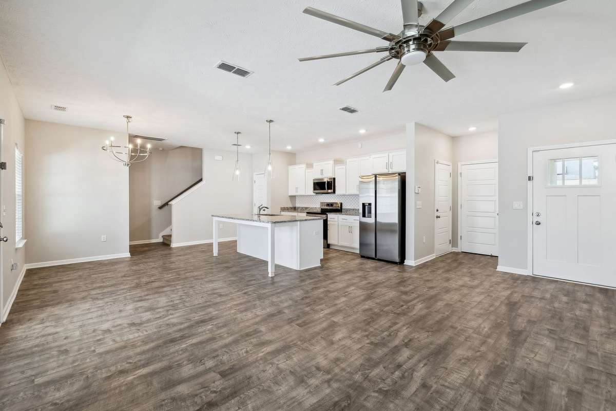 Located in the highly sought- after Jackson Towne Luxury Townhome Community, this stunning A Plan home boasts numerous upgrades. Enjoy a fully fenced concrete patio for added privacy, a beautifully designed kitchen featuring stainless steel appliances, granite countertops, white cabinetry, and a stylish backsplash. Granite countertops extend into all bathrooms, adding a touch of elegance throughout. This home also backs up to a serene tree line, offering extra privacy and a peaceful backdrop. Plus, it’s just a short walk to the community pool and dog parks, making it the perfect blend of comfort and convenience! ”