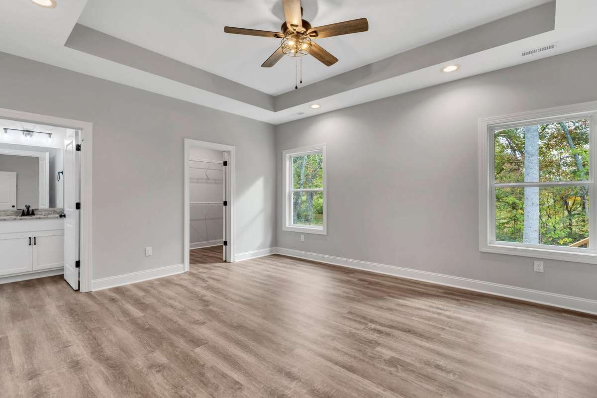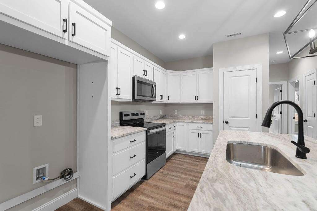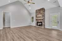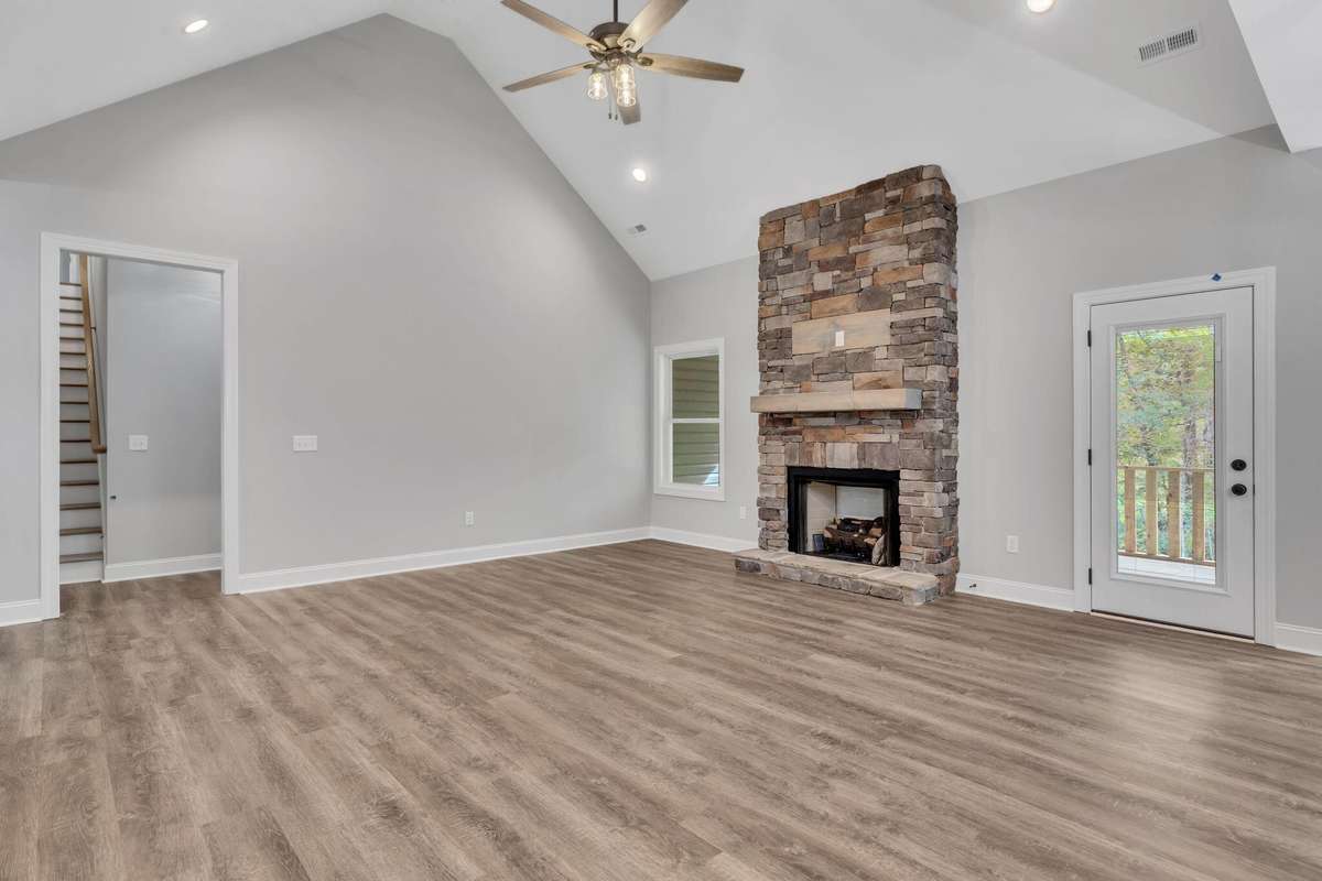 Beautifully finished with all the upgrades! Shaker cabinets & island with granite, upgraded stainless appliances, custom ceiling treatments, open & efficient split bedroom design! Stacked stone gas- log fireplace & custom ceiling treatments! The attractive exterior has stone & shake vinyl accents!