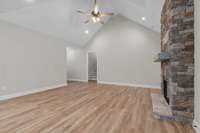 Beautifully finished with all the upgrades! Shaker cabinets & island with granite, upgraded stainless appliances, custom ceiling treatments, open & efficient split bedroom design! Stacked stone gas- log fireplace & custom ceiling treatments! The attractive exterior has stone & shake vinyl accents!
