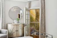 third bedroom upstairs with Juliet balcony opens to the mural room