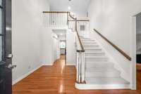 * A grand foyer with cascading staircase sets the tone of this elegant house. . The main floor features a