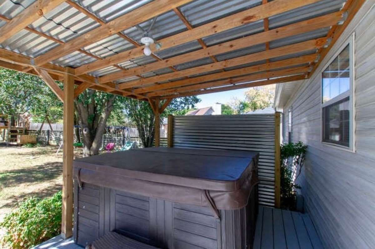 The eat- in kitchen has stainless steel appliances & offers a delightful view of the backyard. Step outside to discover an amazing covered patio and sitting area, perfect for relaxation and entertaining. The backyard features a jacuzzi of which remains with the property, enhancing your outdoor living experience.