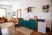 The primary bedroom feels like a peaceful sanctuary, providing warmth and comfort with elegant simplicity. The bathroom continues the theme, balancing rustic charm with contemporary touches to create a refreshing, rejuvenating space.