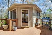 Lovely custom built 3 bd, 2 ba, 2377 sq ft home on corner lot. Many upgrades such as natural gas furnace, gas hot water heater and hardwood floors ( except 2 guest rooms) and many plantation blinds. Split floor plan offers privacy, and cathedral ceiling in great room and natural stone gas log fireplace will charm you. PLUS you have to see to believe the private 19' x14' outdoor living area. This 3 season room just steps off existing deck is covered and fully screened. Add your seasonal television, refrigerator and spectacular views for outdoor enjoyment. Kitchen features alder wood cabinets, new granite countertops and new subway tile backsplash. Stainless steel appliances and over and under counter lighting are recent additions as well. Formal dining room/ office has a bay window, glass paned double entry door off foyer and a pocket door closing or opening to kitchen. Owners' suite has plantation blinds, a large walk in closet, bath with dual sinks, new large walk in shower, 2 linen closets and ceramic tile floor. Bedroom 2/ office features plantation blinds, ceiling fan and carpeted flooring. Bedroom 3 has ceiling fan, carpeted flooring and lots of natural light. Guest bath has a step- in shower, transom window and ceramic tile flooring. Laundry room has extra cabinetry, laundry tub and pocket door for privacy and quiet. Sunroom is located just off the kitchen eating area and has a window seat with storage and wood floors. Maintenance free deck with solar lights connects to outdoor living area. Garage is oversized and easily houses 2 cars and additional storage/ shelving. Very tall crawl space has a large cement slab and workshop area. Fairfield Glade charges a $ 5, 000 amenity fee to buyer at closing.