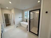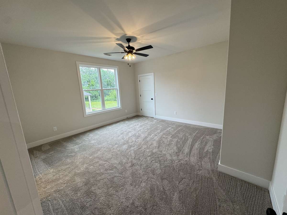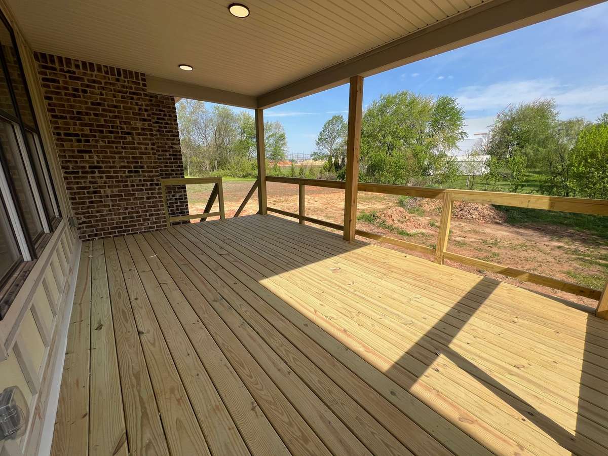 Welcome to this beautiful new home with everything you would want or need! impeccable construction; great location. Must see. Beautiful custom fireplace in great room with exposed beams; overlooking nice private back yard with spacious covered deck. Lots of natural lighting. Open concept, entry foyer, dining room, large kitchen with custom cooktop hood, plenty of cabinets and storage space; soft- close drawers; walk- in pantry with shelving. Quartz countertops. Hardwood floors throughout with carpet in bedrooms; Large bedrooms, play room, large primary bedroom with exposed beams and gorgeous/ spacious bathroom suite with custom barn door, freestanding tub, walk- in closet with custom shelving... a dream! Oversized garage; mudroom entryway.