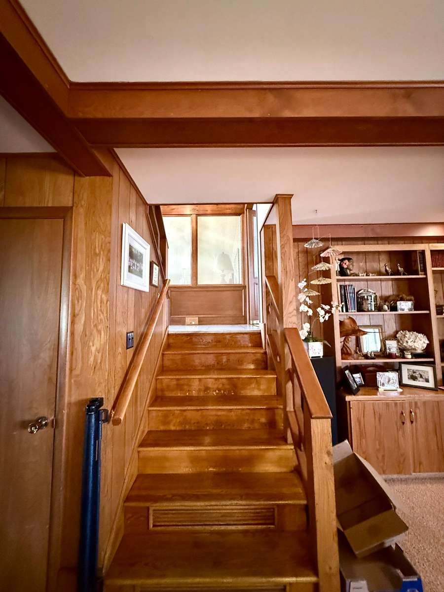 The upstairs living area is accessed from the foyer. In addition to 4 bedrooms and 2 full bathrooms the top level provides additonal storage including cedar- lined closet and access to attic storage.