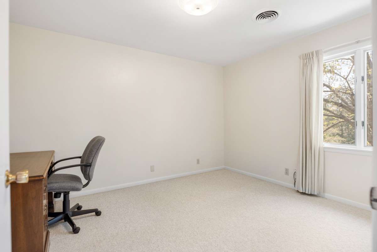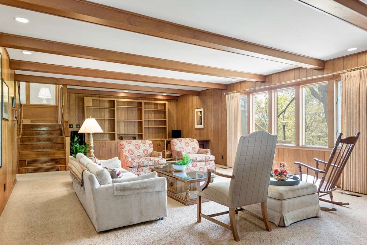 Entering the house from the carport level one is struck by the warmth of a paneled den with limestone fireplace, wood beams and built- in bookshelves on the far wall. The utility room just off the carport entry provides convenient access to laundry or a drop zone. The primary suite can also be found on this level along with private office and separate entrance. The spacious walk- out basement contains a full bathroom as well as large accessible walk- in storage area with access to outside.