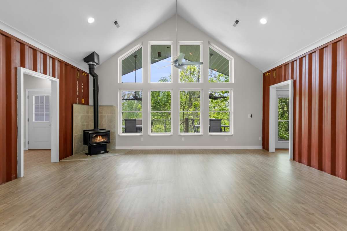 Discover a truly unique retreat in a quiet water community on the Cumberland River—just a short drive to Fort Campbell, Nashville, and Land Between the Lakes. Nestled on nearly 6 private acres, this custom- built, three- story shipping container home offers seasonal lake views, modern amenities, and a rare opportunity for both full- time living and income- producing potential.