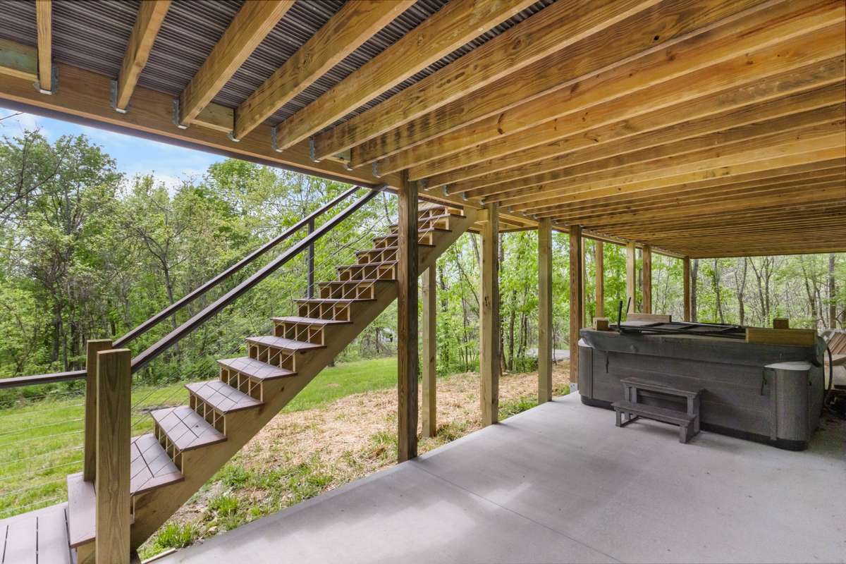 Thoughtfully designed for accessibility, the home features a spiral staircase, elevator, and standard stairs for seamless navigation across all floors. The property includes ** 3 RV hookups** , ** external- access bathrooms** , and ample space for additional tiny homes or campsites, making it perfect for events, retreats, or a lakeside rental venture.