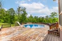 Sitting on 5 beautiful acres! Driving up the huge driveway leads up to the added carport with fans and light available! The carport can fit at least 3- 4 vehicles, if not more! Sidewalk leads to the huge covered front porch! Perfect for relaxing looking at storms or drinking coffee early morning, whatever you desire! Sure there may be some wildlife out here! The beautiful foyer has beautiful flooring that leads into the main living areas! Downstairs on the main floor has a gorgeous formal dining area with arched walkways and wainscoting, beautiful living room with a stone fireplace, vaulted ceilings, and leads into the spacious eat in kitchen! Tiled eat in kitchen with a pantry! SS appliances to include Double ovens, microwave, refrigerator, dishwasher, corner sink, backsplash, gorgeous cabinets, and a flat top stove nestled in the granite countertops! The primary bedroom on the main floor has stunning views! Double trey ceiling and has a door that leads to the back deck! The stunning primary bathroom has a huge soak tub, separate stand up shower with plenty of space, and double vanities! Another bedroom downstairs with a full bathroom next to the room! laundry room is downstairs with lots of space to include a sink in the laundry room! Going upstairs leads you to the cat walk! Has a jack and jill type bathroom upstairs. two bedrooms are upstairs with a massive bonus room that has a closet! In total, 4 bedrooms, a huge bonus room and 3 full bathrooms! Backyard has 2 sheds, covered and screened in deck, extra deck for the pool area, and sitting on 5. 01 acres! Take a look at this awesome home! Don' t forget the amazing pool that' s perfect for the summer!