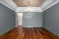 Residence 101. The Westbury. One Story, Main Level, Front Location. Custom Finishes, Traditional Design. Beautiful Teak Hardwood Flooring Throughout. Arched Windows with plantation shutters. Updated Kitchen. Primary with New Bath, with Full Size stack Washer and Dryer. Second Bedroom or Den with Full Bath. Opportunity to open the den to Living Room for more Open Plan. One Car Garage Space and Storage Closet included. Secure building within Whitland Neighborhood. Walk tree shaded sidewalks to Elmington Park. The Park offers playing fields, tennis, pickleball, weekend food trucks and free summer movies. Quiet, attractive Lobby, in a PET FRIENDLY building. Sorry, no rentals.