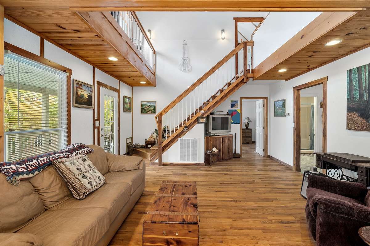 The lake life is calling you. This beautiful 2- story home features dramatic double porches in a vintage farmhouse style featuring a seasonal lake view and gorgeous wooded private property. This 2 bedroom/ 2 bath home is warm and cozy with vaulted ceilings, loft, custom staircase and beautiful wood accents contrasting with a clean, white esthetic. Convenient to the beautiful Dale Hollow Lake, and only minutes to Sunset Marina, this home has the perfect blend of cozy, country living and outdoor recreation. This property is a short drive to either Byrdstown or Livingston, known for its historic downtown, antique shops and unique dining. Additional features include a 2 car detached garage and metal roof on both structures for low- cost maintenance. Two parcels go together with this property - both lots 8 & 9 further known as Parcel #' s 017. 00 & 018. 00. Both taxes and both acreages are added together to reflect totals. ( porch swing not included). Buyer to verify all information for themselves.