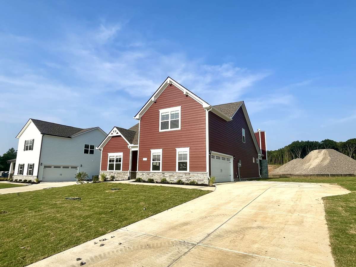 Plan ( 2581 DEF) Move In Ready! 55 and up love this plan! Upgrades everywhere. Beautiful quartz countertops! Largest owner' s suite/ walk in closet we have. Awesome Floor plan that has Owners suite and a guest bedroom on the main and 2 Bedrooms up huge bonus room over garage. Open concept in great room and kitchen. Quartz kitchen countertops staggered cabinets recessed lighting all kitchen appliances including fridge. Large covered back porch w/ woodburning stone fireplace. Side entry 2 car Garage. You will love this home! Blinds, insulated garage. 65 acres of hillside forest left natural to walk, hike and explore. Buyer only pays $ 99 in closing costs with preferred lender. Ask about rate buy down!