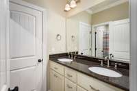 This beautiful 3- bed, 2. 5- bath home has a dedicated office that could easily serve as a 4th bedroom. You' ll notice the warmth of hardwood floors and the elegance of crown molding that flows seamlessly throughout, with tile accents in the bathrooms for a touch of luxury. The spacious master suite offers a spa- like retreat feat. a jetted tub, walk- in shower, dbl vanity, & an expansive walk- in closet. Bedrooms 2 and 3 are spacious and share a well- designed bathroom w/ a dbl vanity, perfect for guests or family. The laundry room boasts granite countertops, ample cabinetry, & a sink. Step outside to a covered back patio overlooking a fully fenced yard—ideal for relaxing evenings.