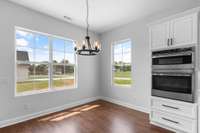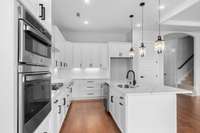Welcome to this meticulously designed new home! The residence features three spacious bedrooms and two bathrooms, along with a supplemental room with a half bath. It includes upscale features like top- of- the- line stainless steel appliances, custom- built expansive wardrobes, and an exquisite coffered ceiling in the main living area. Through precise craftsmanship and the use of premium materials, this home is ready to provide a blend of opulence and sophistication to its first occupant. Don' t miss out on this move- in- ready gem.