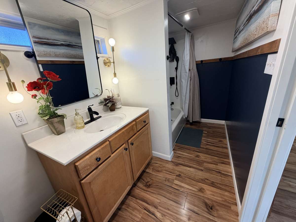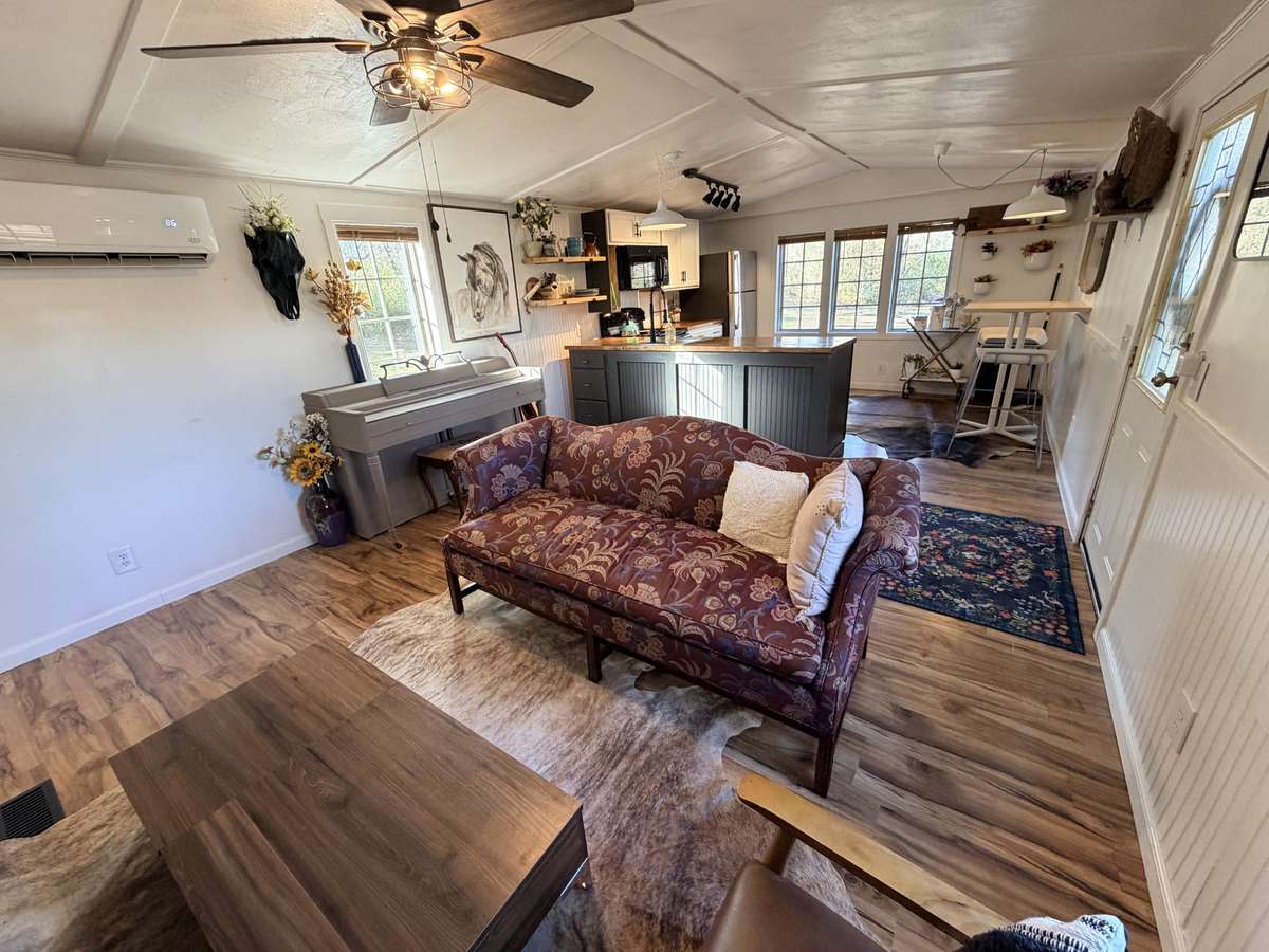 The interior features a bright open- concept living room and kitchen, creating a spacious, welcoming feel perfect for everyday living or entertaining. A dedicated coffee bar adds charm and convenience.