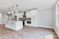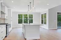 As you step inside, you' re greeted by the warmth of engineered wood flooring that flows seamlessly throughout the home. The main level hosts the spacious primary bedroom, providing a private retreat with an en- suite bath adorned with elegant tile and high- end fixtures.