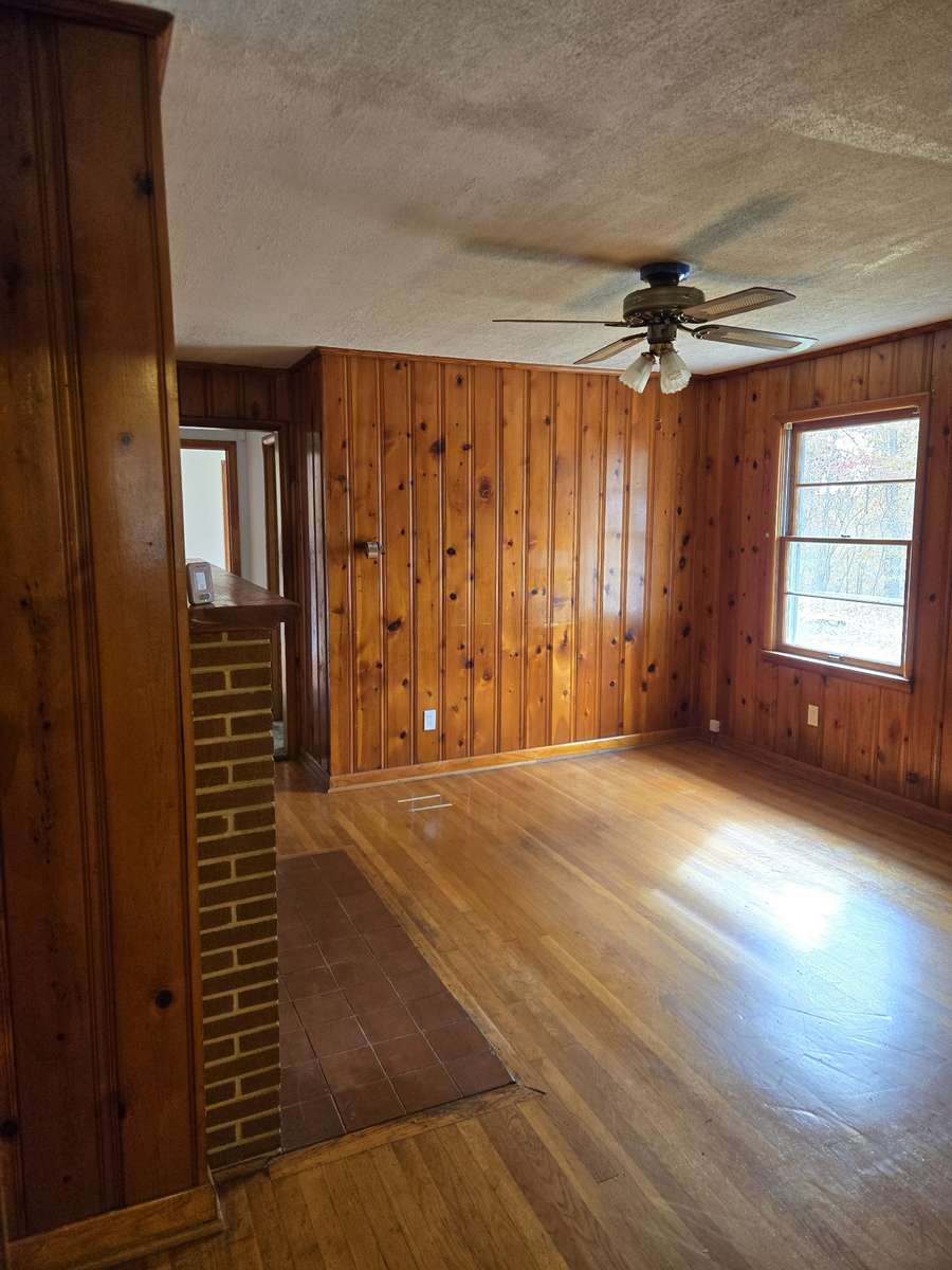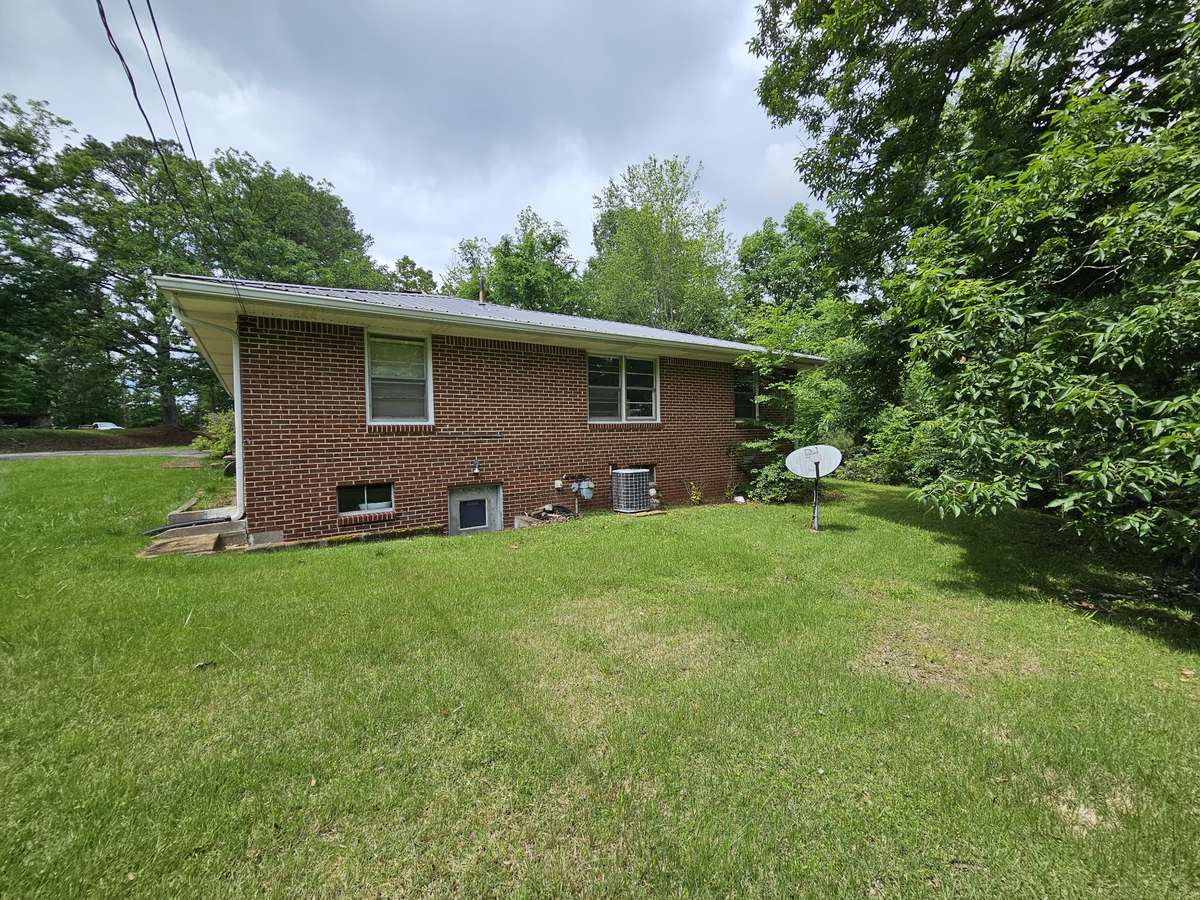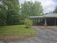 Brick home on 3. 98 acres nestled in the trees for privacy with large yard. Newly painted and a kitchen cabinet makeover. Unfinished basement has wall mount gas heater a finished bath and exterior door and also utility hookups with a room mostly finished being used for BDR. Wood burning fireplace in Den. Just outside city limits with water and gas at the road could possibly be divided up to uitilize the other acres.