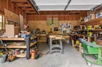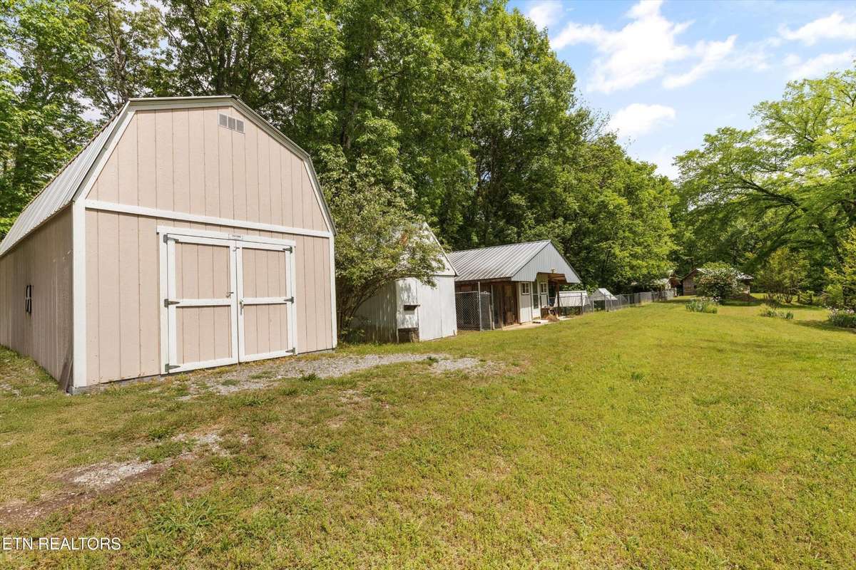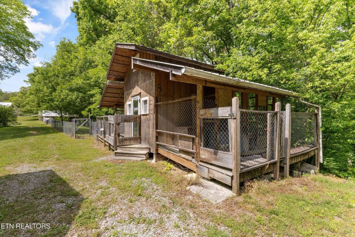 Outside, the property continues to impress with a glass house—perfect for an office, reading nook, or simply relaxing while watching the local wildlife. A detached two- car garage features an upstairs room, while a third garage/ workshop with 12- foot ceilings is perfect for hobbies, projects, or storage. For animal lovers and hobby farmers, the property includes kennels with water and electricity, two equipment storage buildings, and a barn ready for goats, chickens, or other livestock.