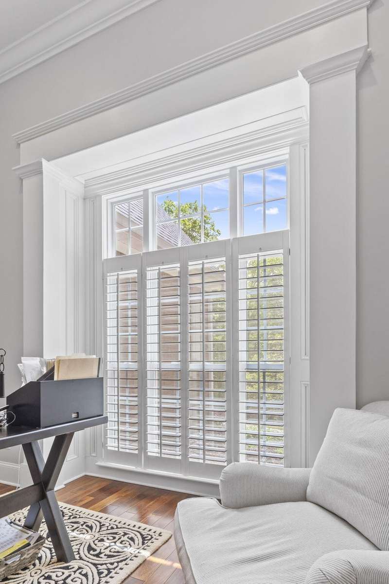 The thoughtful split bedroom plan ensures privacy and tranquility for all. The primary suite is a true retreat, where rich hardwood floors continue beneath an impressive tray ceiling. The spa- like bath features handsome travertine tile, separate granite- topped vanities, a fully tiled shower, and a separate soaking tub. And the walk- in closet? A haven of organization and space! A versatile fourth bedroom, currently utilized as an office, is conveniently located at the front of the home.