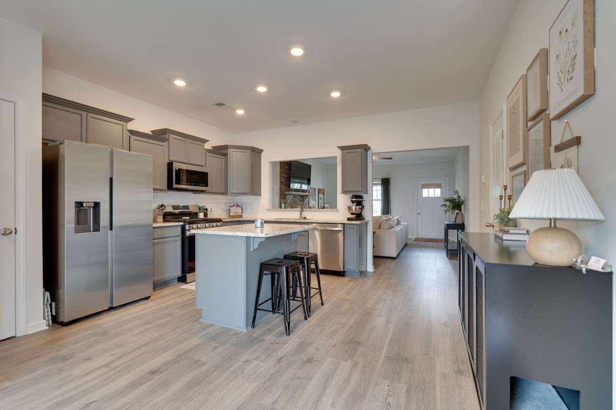 Seller has accepted an offer with a 48 hour first right of refusal contingency. This nearly new 3- bedroom, 2. 5- bath home offers a well- designed layout with the primary suite conveniently located on the main floor. The suite features a custom walk- in closet and private bath for added comfort. The open- concept living area includes granite countertops, stainless steel appliances, and a cozy fireplace. Upstairs, you' ll find two additional bedrooms along with a versatile bonus room—perfect for an office, playroom, or extra living space. Enjoy the outdoors with a covered front porch, extended back patio, and fenced backyard.