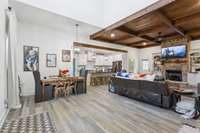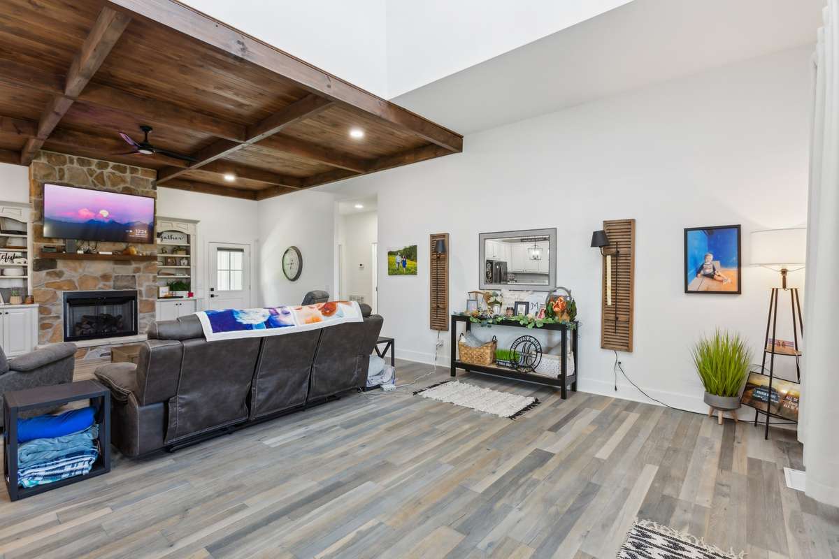Welcome to this beautifully maintained 3- bedroom, 2. 5 bath home, offering both comfort and versatility. Inside, you’ll find a dedicated office and a large bonus room that can easily serve as a fourth bedroom—perfect for growing families or hosting guests. The open- concept kitchen features stunning granite countertops, high ceilings with rustic wood accents, and a cozy fireplace that adds warmth and charm.