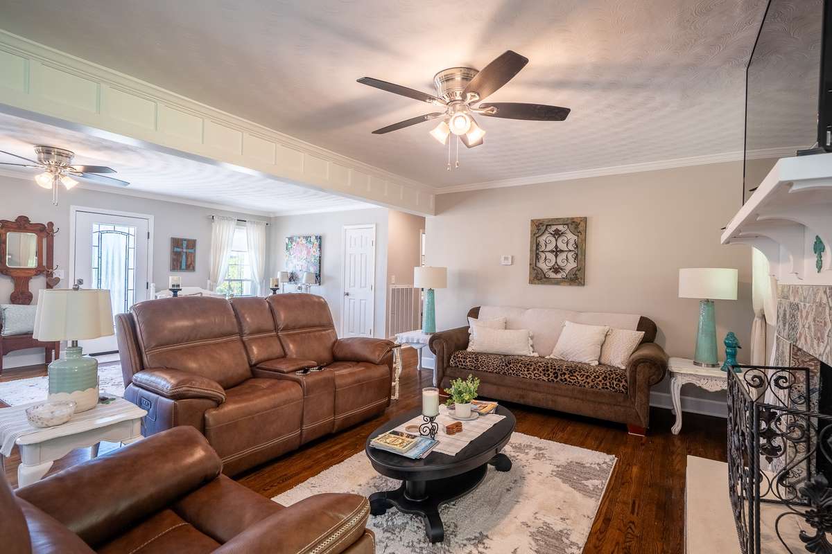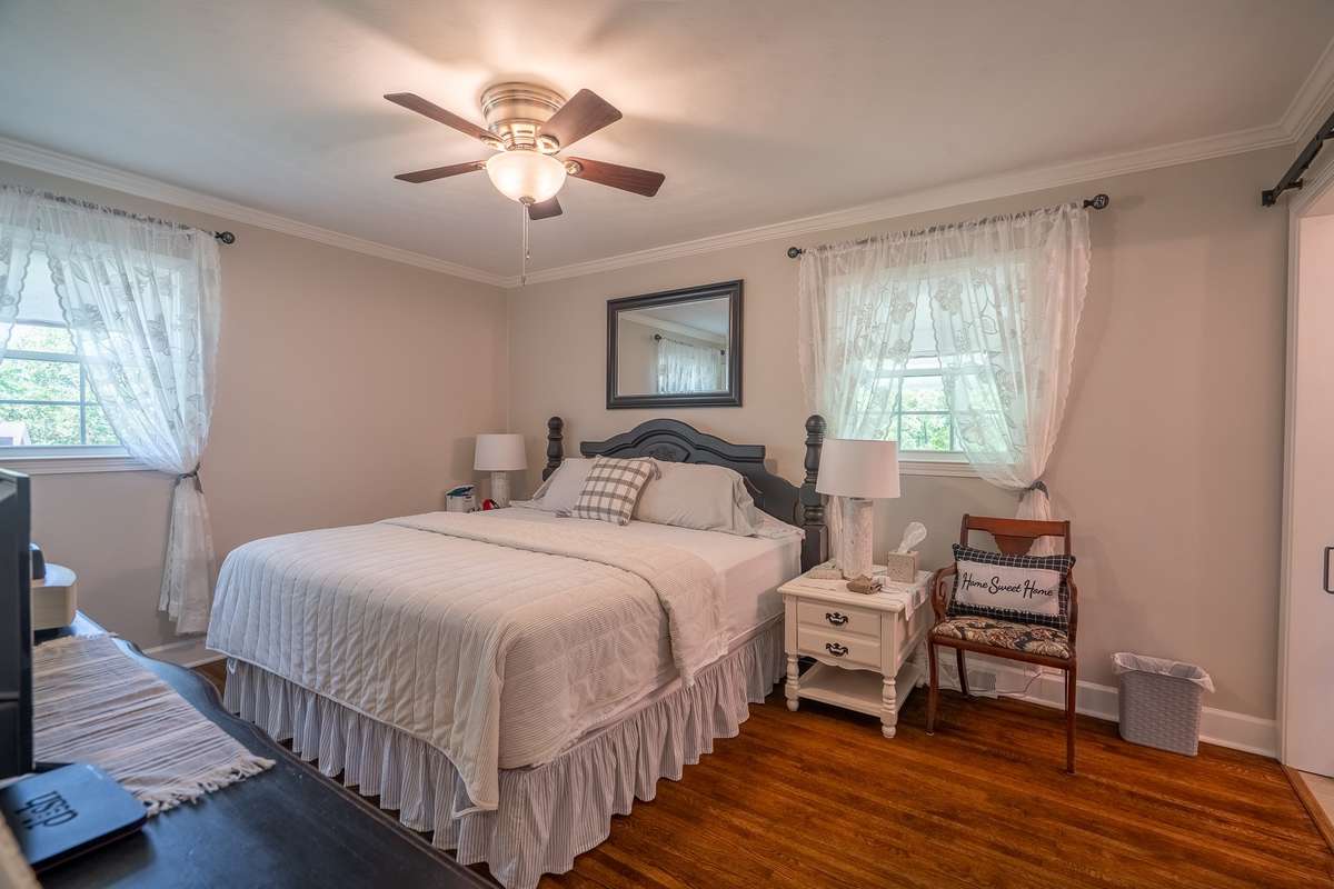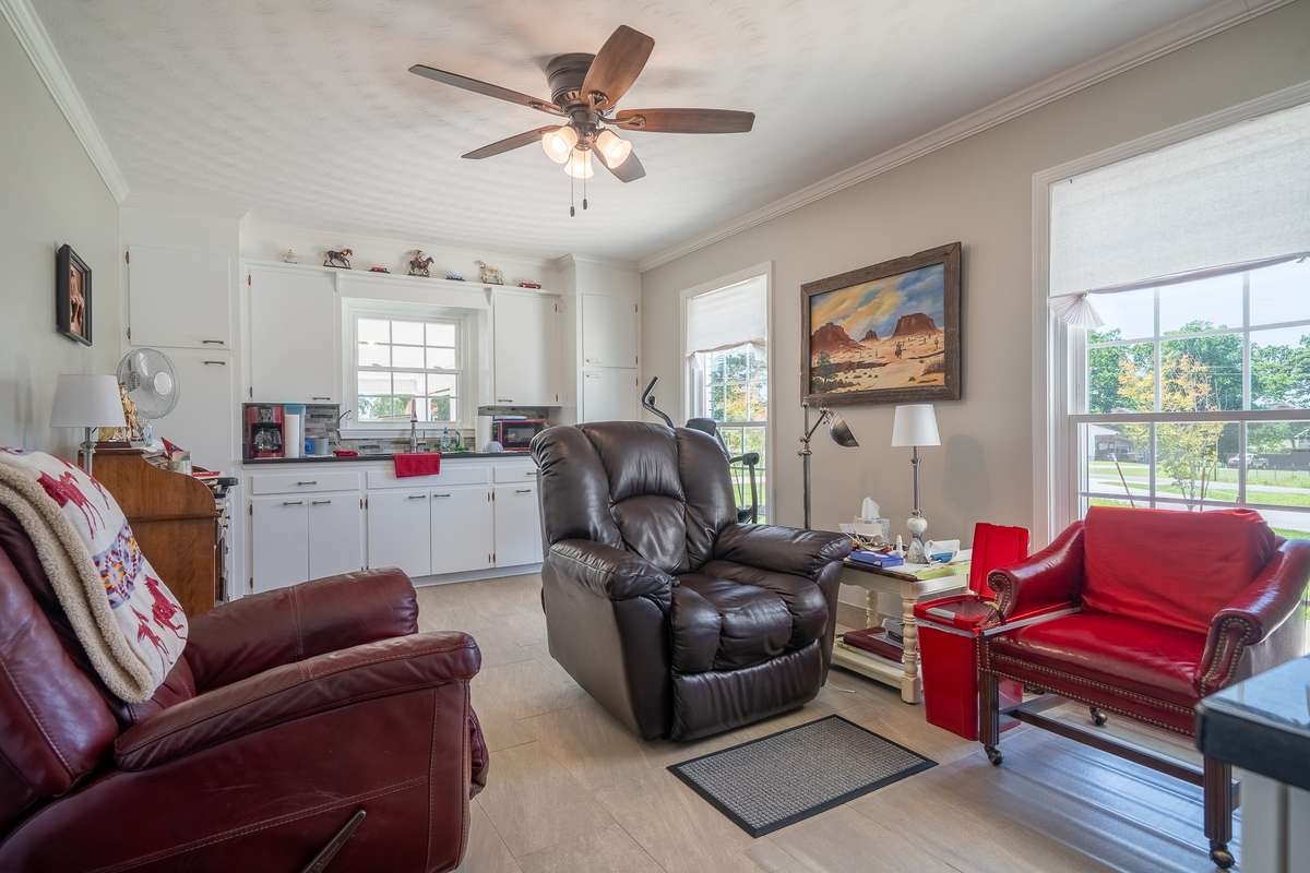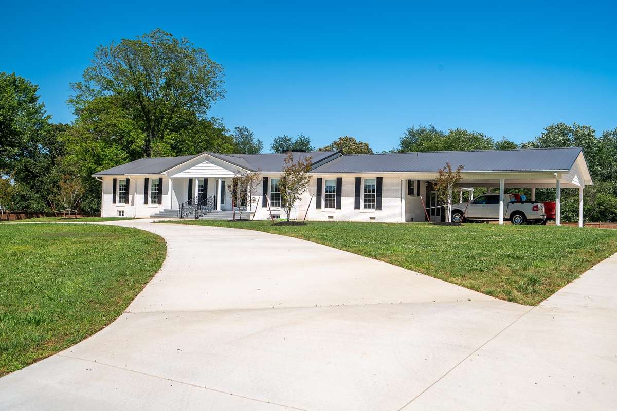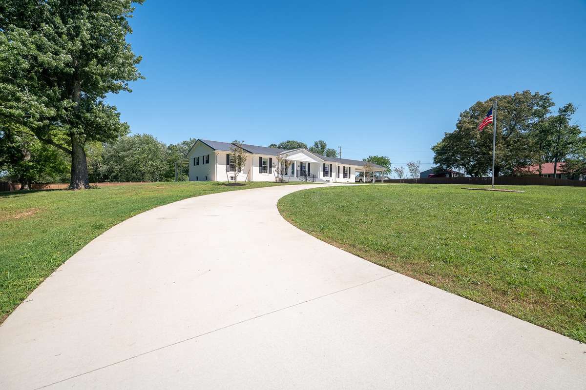 Move- in- ready! Beautiful modern farmhouse, completely remodeled, on 1. 62 acres in the peaceful countryside! New a/ c, hot- water heater, all new windows, doors, crown molding, new roof, updated plumbing and electrical, renovated bathrooms and beautiful, custom kitchen - with granite and quartz countertops, Wolf gas stove and Wolf hood and bar- sink in island, with new microwave - custom cabinetry in kitchen, refinished original red- oak flooring, with porcelain- tiled kitchen, den, and bathrooms. New driveway, custom carport, with huge back patio - perfect for parties and get- togethers. All new exterior paint, siding, shutters - with expansive driveway and circular drive that leads to custom wrought- iron railings and front porch. New fence and exterior building for equipment and storage. Freshly updated basement - new paint ( walls & safe room) , epoxy on floor, new lighting, new ductwork, new staircase. Only short drive to Alabama and Nashville.
