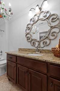 Upstairs, three additional spacious bedrooms, each with walk- in closets, provide comfort and privacy. The loft area includes an attached half- bath, perfect for guests or as a flexible living space.