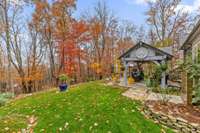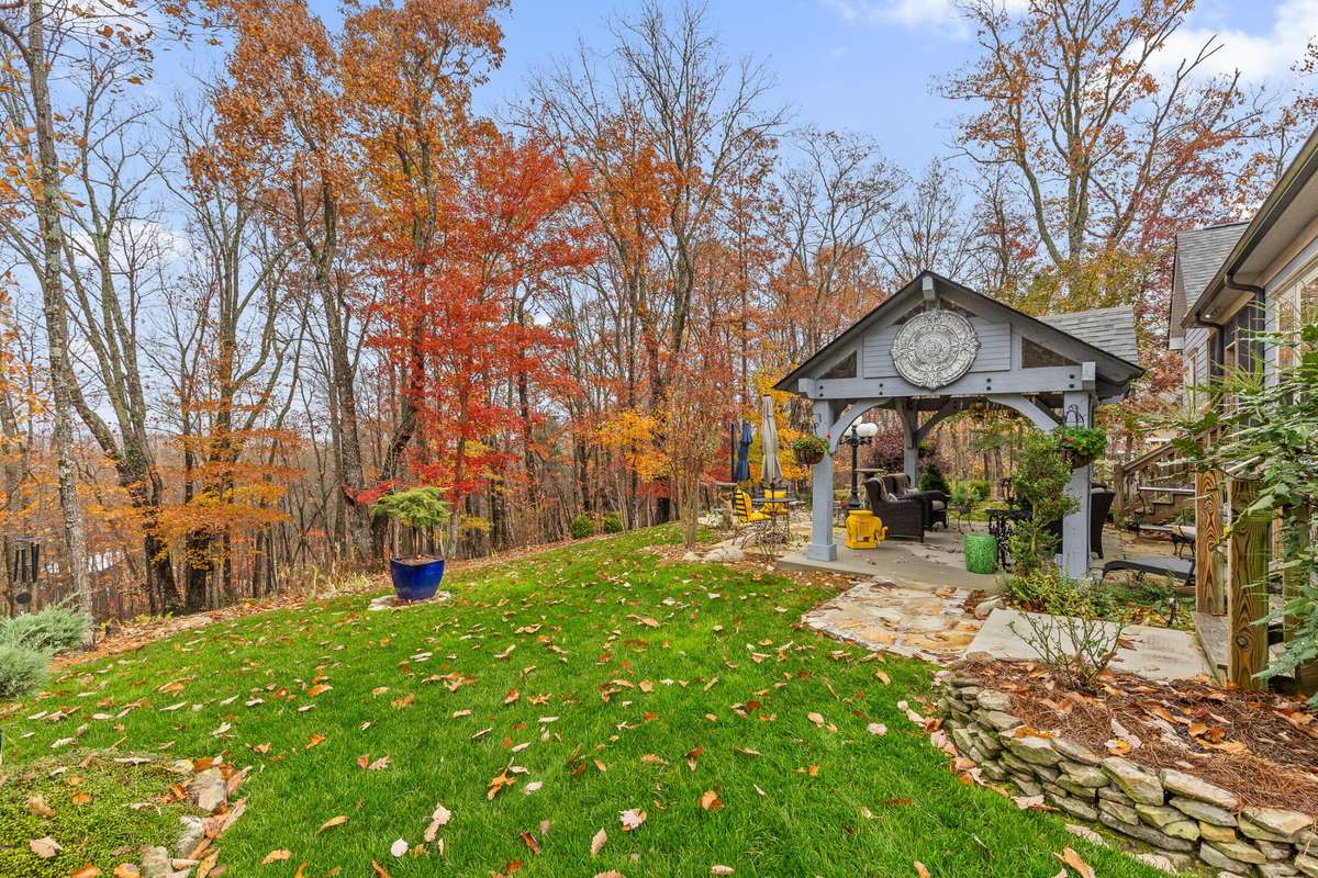 Outdoor living is nothing short of spectacular. The screened porch with its own LP fireplace offers year- round comfort, while the covered pavilion is equipped with chandeliers, a ceiling fan, TV, and electric—ideal for entertaining or unwinding. The meticulously landscaped grounds feature native plants and gardens, with decorative pots that convey with the home, creating a beautiful, peaceful retreat.