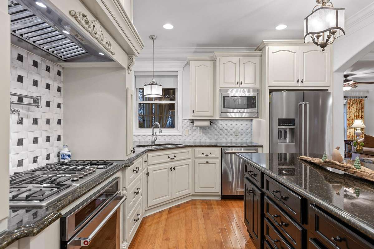 Additional highlights include two LP fireplaces, a 22KW Generac LP gas generator for automatic power, an encapsulated crawl space with dual- fuel air handlers, antique sensor lights, and a three- car garage with extensive storage.