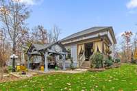 Outdoor living is nothing short of spectacular. The screened porch with its own LP fireplace offers year- round comfort, while the covered pavilion is equipped with chandeliers, a ceiling fan, TV, and electric—ideal for entertaining or unwinding. The meticulously landscaped grounds feature native plants and gardens, with decorative pots that convey with the home, creating a beautiful, peaceful retreat.