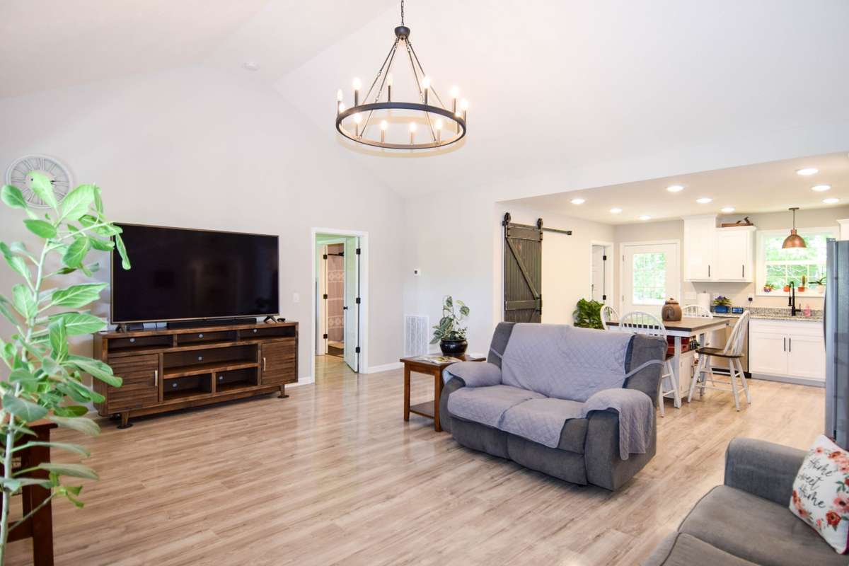Beautiful one- owner home designer perfect! ! Located on 2. 53 acres amidst woods offering serenity and privacy. Private deck and Southern covered porch for peaceful living. Concrete driveway and parking pads, lovely sidewalk, privacy fencing and detached shed. State- of- art interior and amenities. Dual bedroom system, customized barn door pantry entrance, deluxe lighting fixtures, granite counters in kitchen and baths, Lake Shore pecan stone laminate flooring, ebony bath tile floors, panel interior doors. Everything to perfections! ! Picturesque!