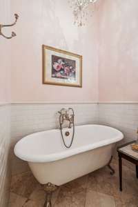 becoming even more beautiful and refined. The Federal- style home opens to a stunning foyer featuring 12 ft. soaring ceilings and an elegant handcrafted stair case with original poplar steps and oak railing. Original 1” thick tongue- in- groove ash floors grace the interior which was fully renovated by Tallman Enterprises and includes: Primary- on- the- main with luxurious ensuite featuring a heated Carrera marble floor, bidet, large air jet soaking tub, spacious walk- in marble shower with heated towel bar, custom walnut vanity and cabinets, and custom designed walk- in closet. The open and naturally lit chef’s kitchen features custom cabinetry, subzero refrigerator, Dacor six burner gas range, warming drawer, and new wall oven and dishwasher. The home also features a spacious 28x21’ den with an impressive stone wood- burning fireplace ( 2016) , an attached 2. 5 car garage includes additional storage and private driveway ( replaced 2025) , separate fully renovated ( 2021) walk- in guest house with complete kitchen and attached garage. A beach- entry L- shaped swimming pool ( 2013) compliments beautifully landscaped front, side and backyards which include fountains and a charming traditional English garden. The home has seven fireplaces and is handicap- accessible. GUEST