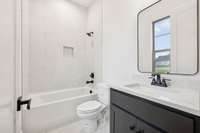 Welcome to the new Willow Plan by Creekside Homes in the brand new Bellsford Landing community. This home is move- in ready! The open concept living room with a stone gas fireplace seamlessly connects to the dining space and kitchen with honed granite countertops, marble slab backsplash, custom cabinetry, double ovens, a gas cooktop, and large walk- in pantry. All bathrooms include quartz countertops, upgraded delta plumbing fixtures and tile throughout floors and shower walls. The flex room downstairs can be used for an office, nursery, kids play room, storage room or more! This floor plan is extremely functional for every day living with a mudroom drop zone at the garage entry, a laundry room connected to the master closet with cabinetry and a sink, and tons of storage space including huge closets throughout and multiple large walk- in attic spaces. The outdoor living space includes a covered porch with stained wood ceilings, stone gas fireplace and farm views. The beautiful new Bellsford Landing subdivision will include a playground, pavilion with grilling area, and a 1- mile walking and bike trail winding through shady tree- line areas and a 1- acre pond. This house is loaded down with upgraded features and designer finishes.
