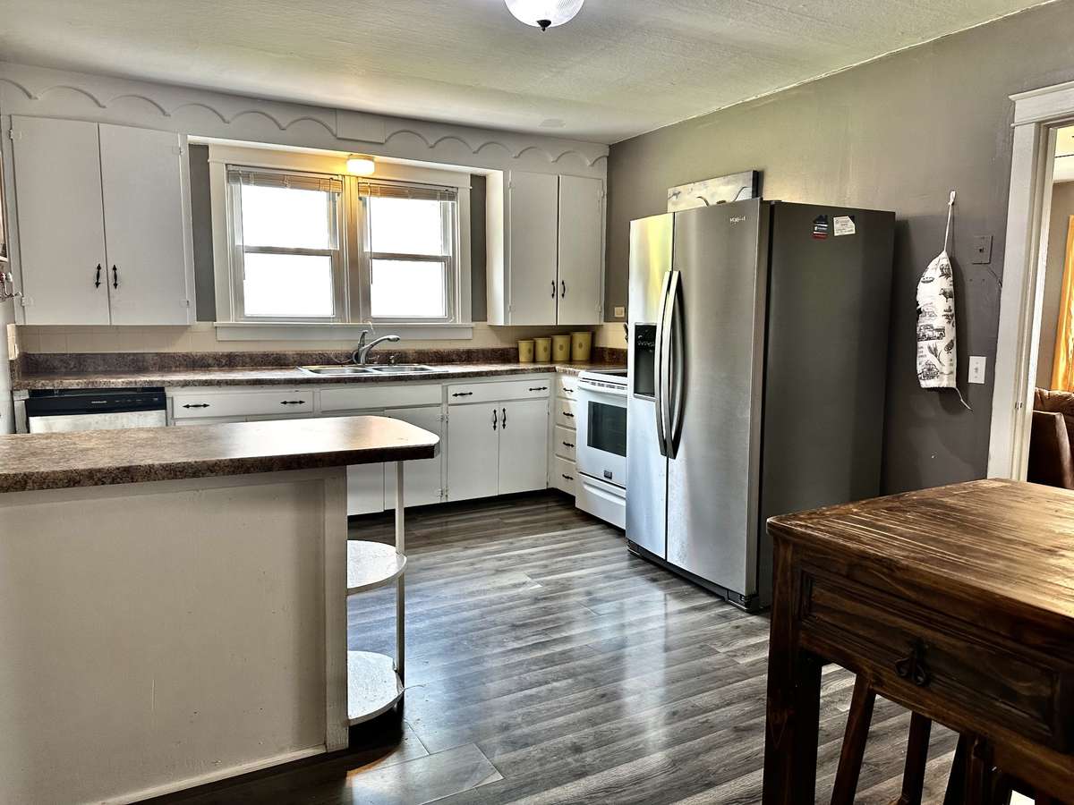 This charming sweet little home is in town with a nice yard with plenty of parking. Enjoy your wonderful outdoor living on the back Deck plus you have a concrete Patio for grilling. The Primary Bedroom has 2 closets plus an exterior Door. Large separate Living Room, Eat- in Kitchen connecting to a wonderful Mud Room for your Washer and Dryer with exterior door to the back Deck. Resting on a calm side street, but just around the corner from any shopping needs your heart desires. This precious Home is ready to make your family HAPPY!