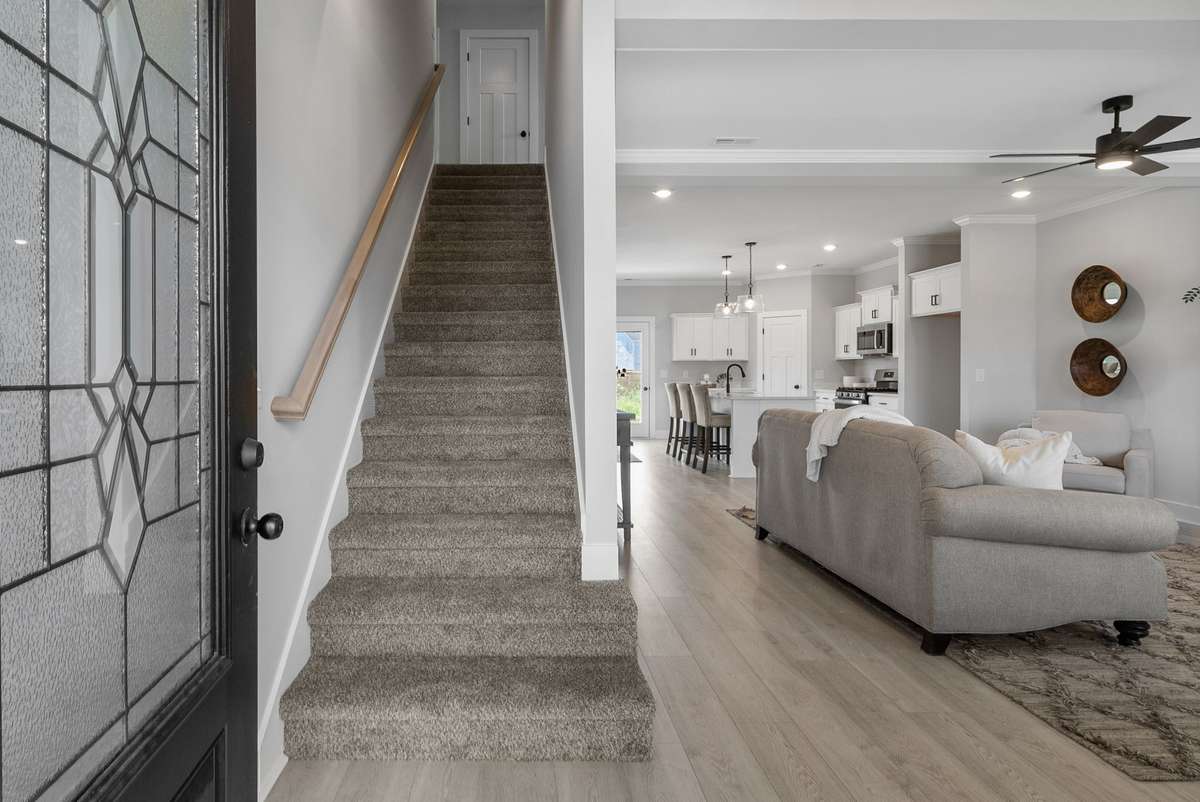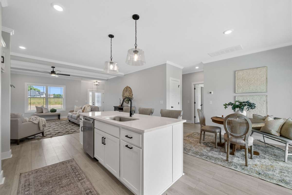 The kitchen boasts crisp white cabinetry, a large walk- in pantry, and flows seamlessly into the living and dining areas—ideal for both daily living and entertaining. Enjoy the convenience of a main- floor primary suite, offering comfort and privacy. Upstairs, you’ll find a versatile open bonus room perfect for a play area, home office, or media space.